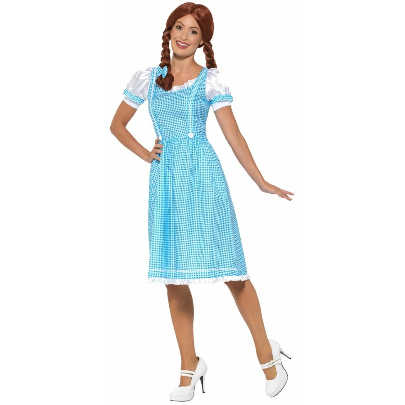 Costume includes dress and hair bows only. Ruby slippers not included.