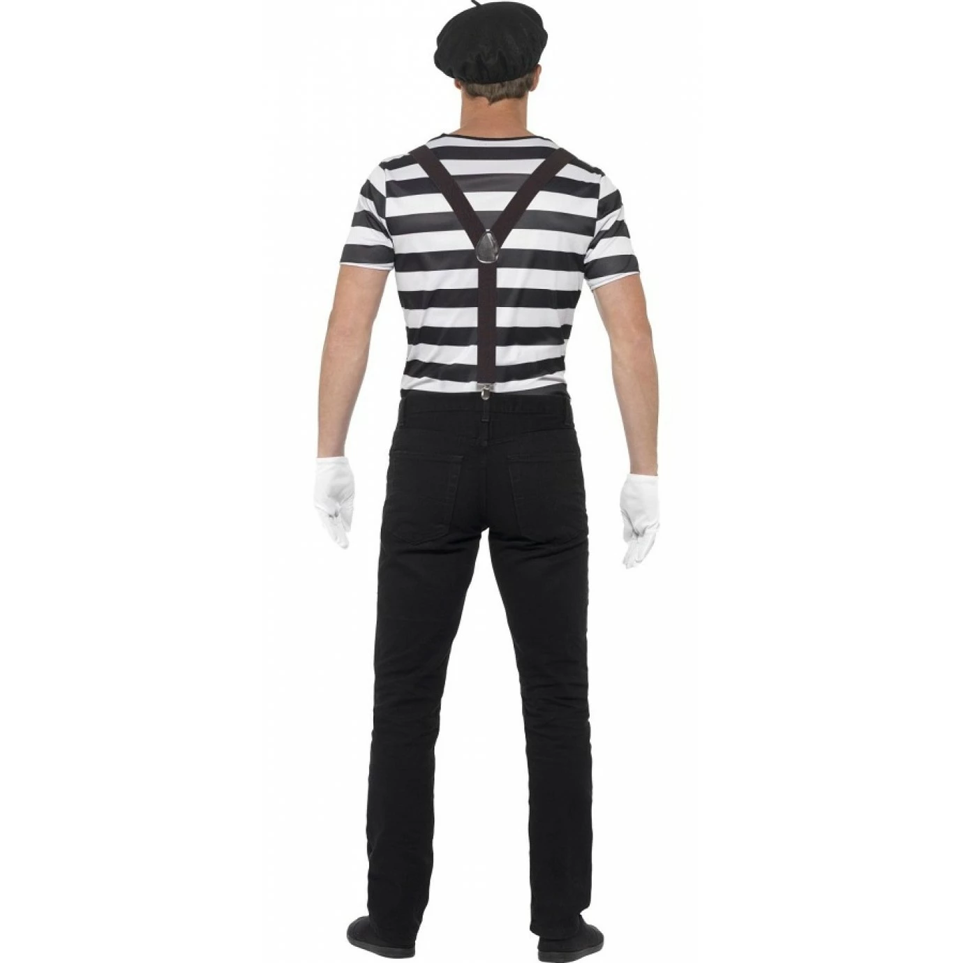 Escape from that invisible box with this adult Mime Artist costume!