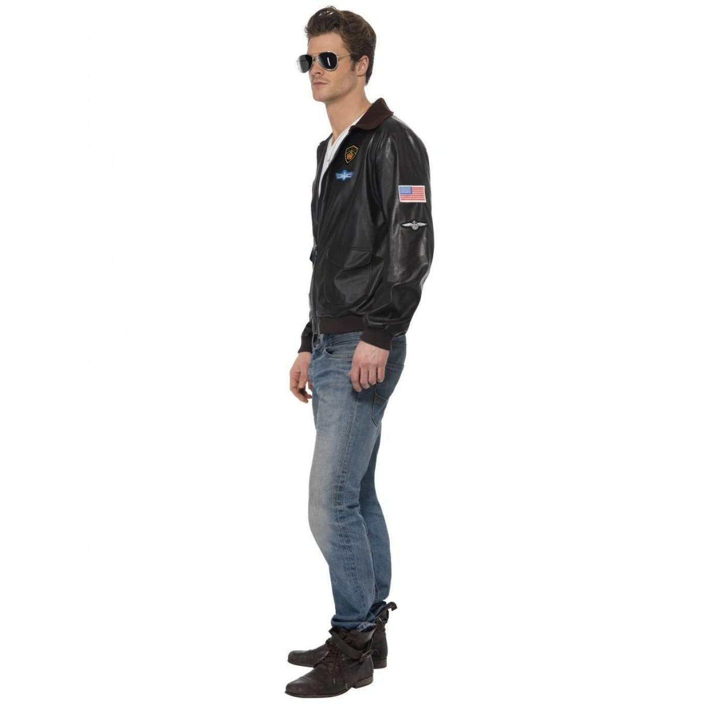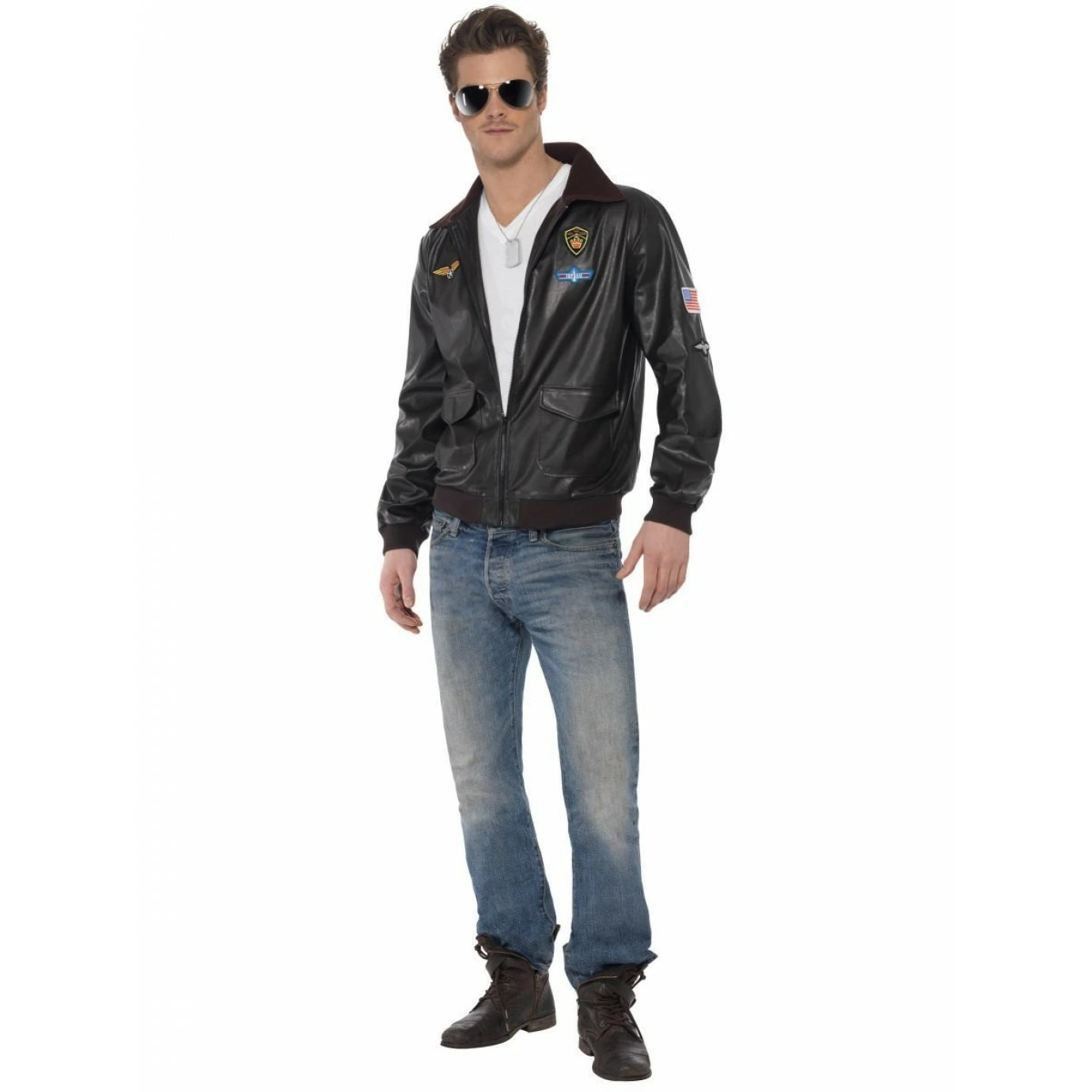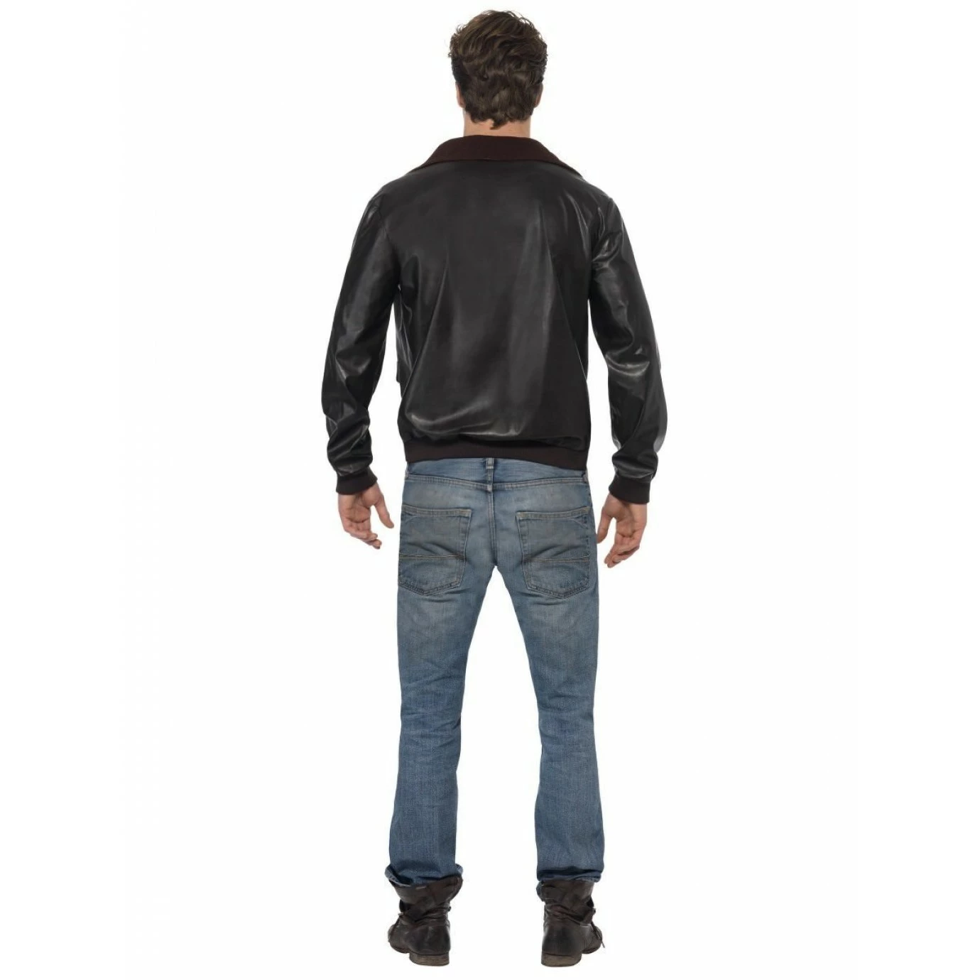 Costume includes faux leather jacket with attached motifs only. Shirt and trousers not included.