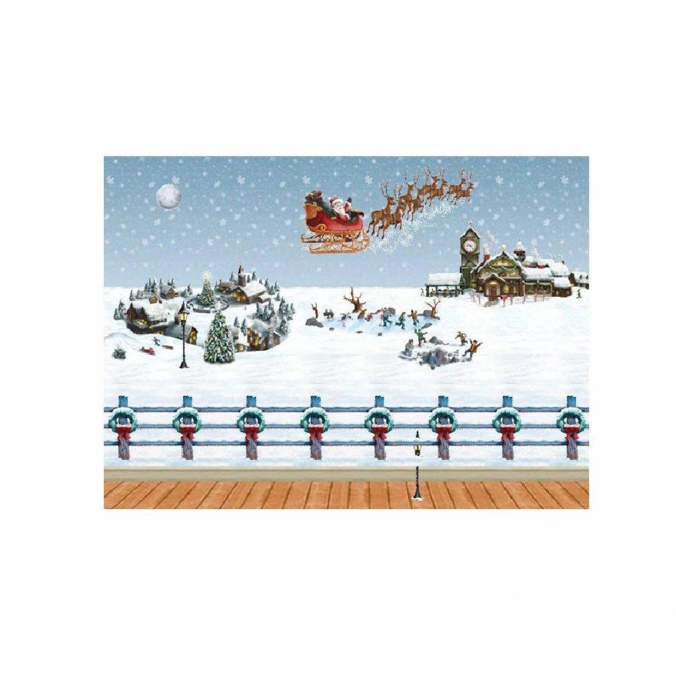 The pack includes: Santa in his sleigh with his reindeer (157 cm). A picture of Santa’s workshop (157 cm), a moon (20 cm) and a North pole sign (43 cm).