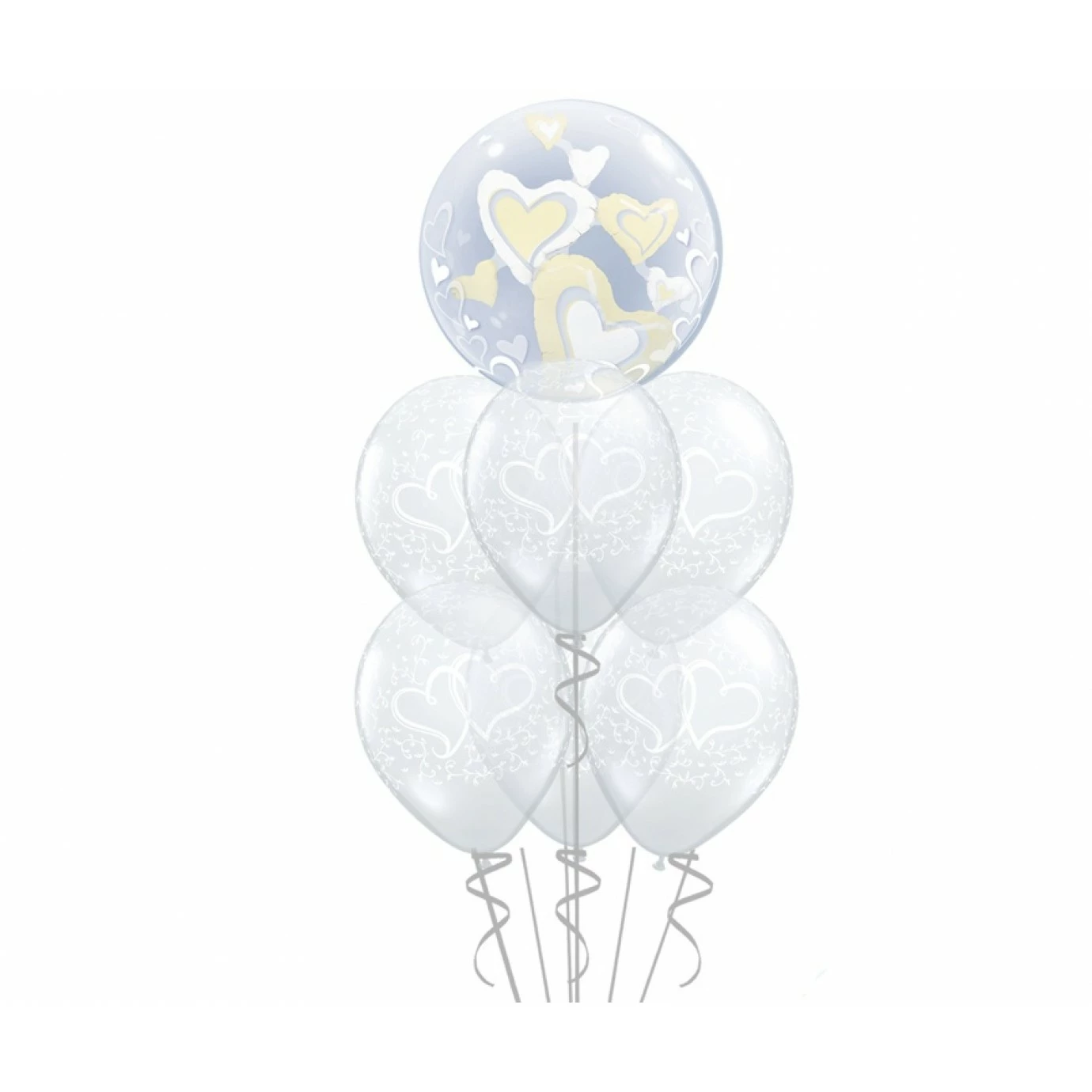 The third image shows these latex balloons featured in a bouquet with a double bubble balloon – ivory hearts. It’s simple to create stunning bouquets! For pricing on a bouquet like this simply call one of our stores!