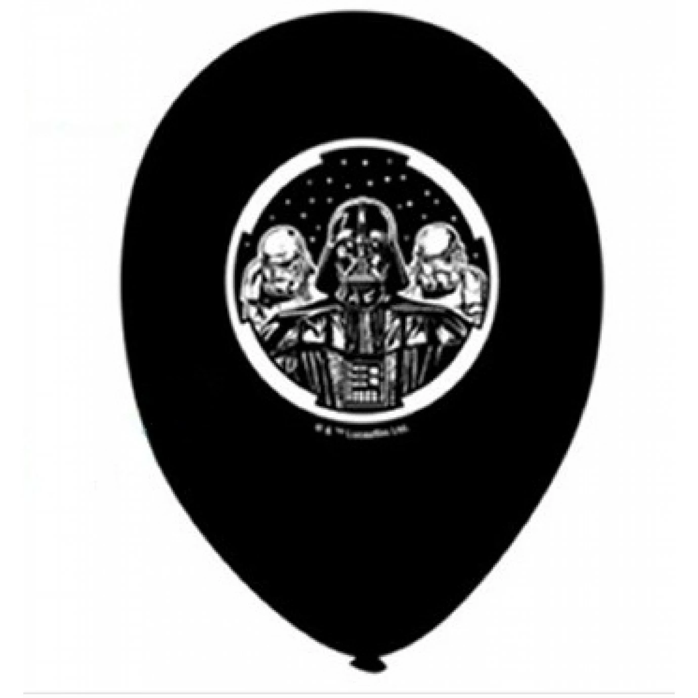 Pack contains 6 latex balloons which measure approximately 23 cm (9″) when fully inflated. Pack contains 2 red, 2 blue and 2 black balloons, all of which have the same white Darth Vader and Stormtrooper pattern.