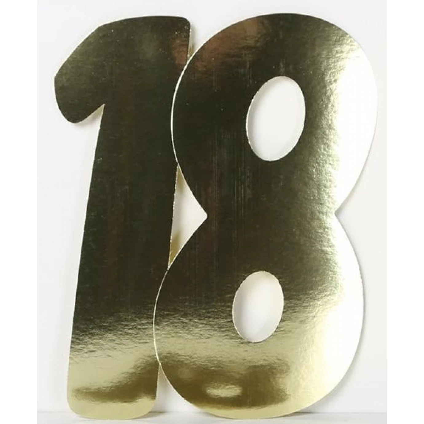 A pack of 3 large cardboard cutouts of the number “18” in gold, each measuring approximately 30 cm in height.