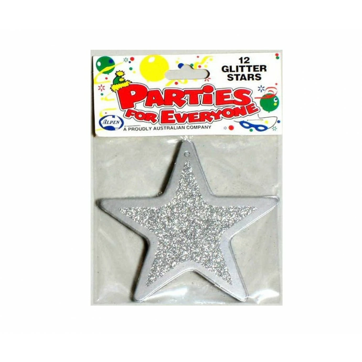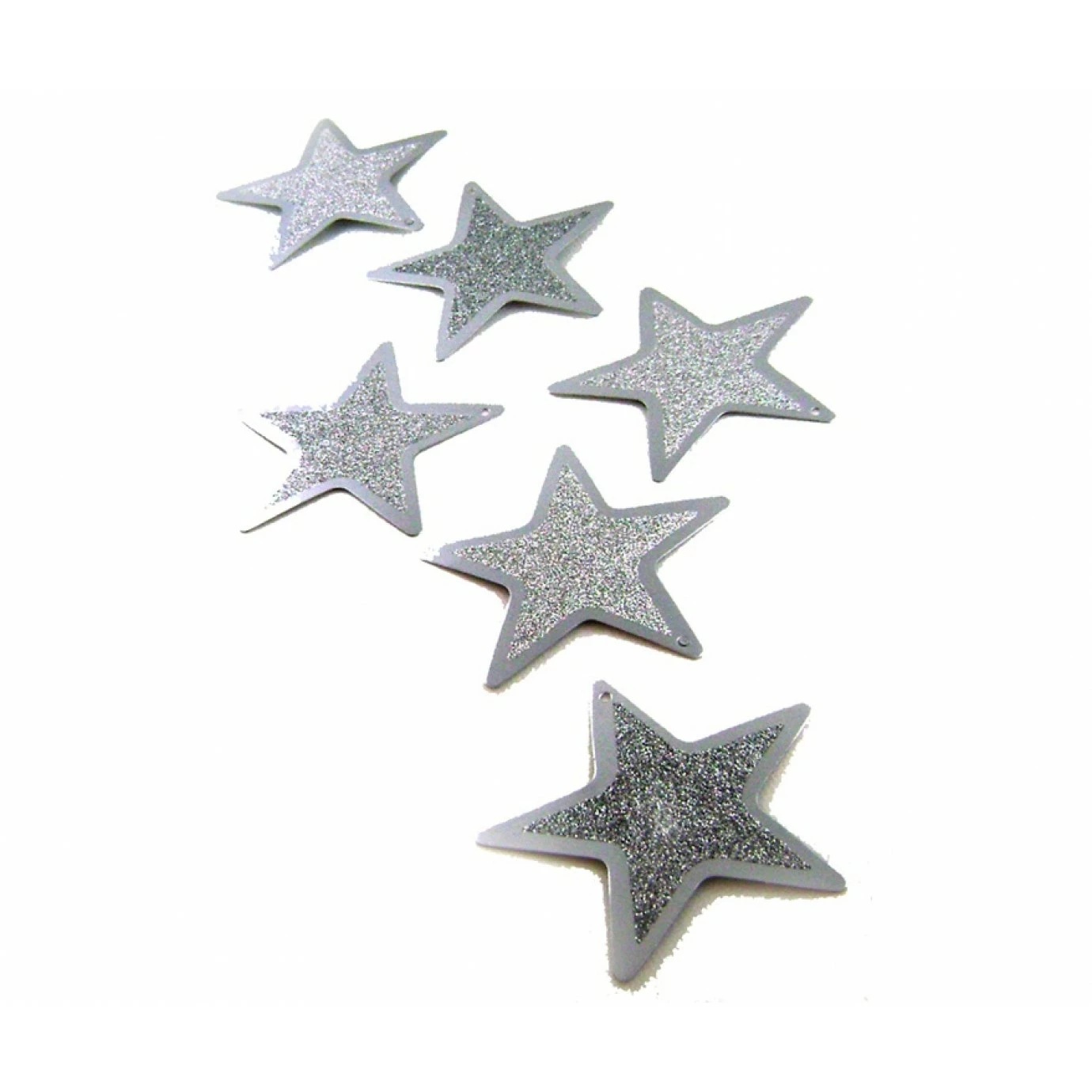 These stars are made from metallic cardboard and in the centre is glitter – choose from silver or gold. There is a small hole in each one so that they can be hung. These stars feature glitter on one side only. Each star measures approximately 10 cm by 10 cm.