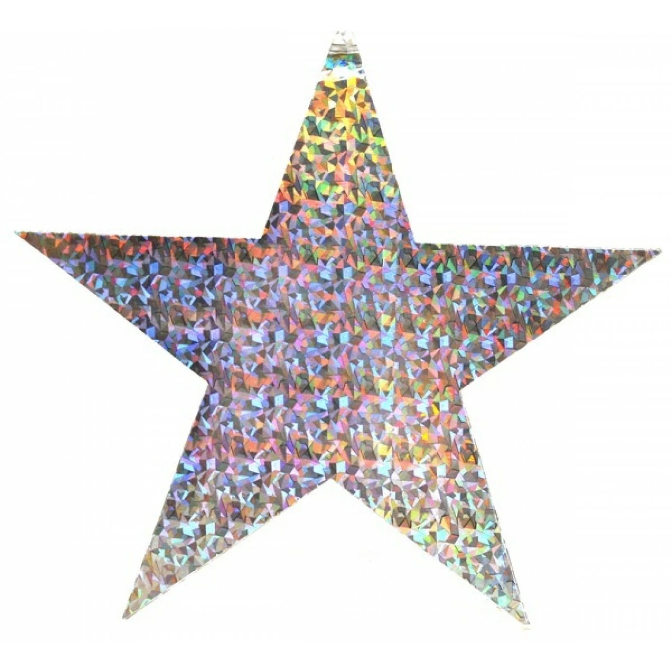 Holographic finish is reflective in the light, creating a sparkling visual effect. Pack contains 12 cardboard stars with foil coating. Each star measures approximately 8 cm in diameter. Printed on both sides. While this product is designed to be stuck to a wall or door with sticky tack or double sided tape, you can also get creative with these stars and turn them into hanging decorations by punching a small hole near the top and attaching them to string or fishing line.