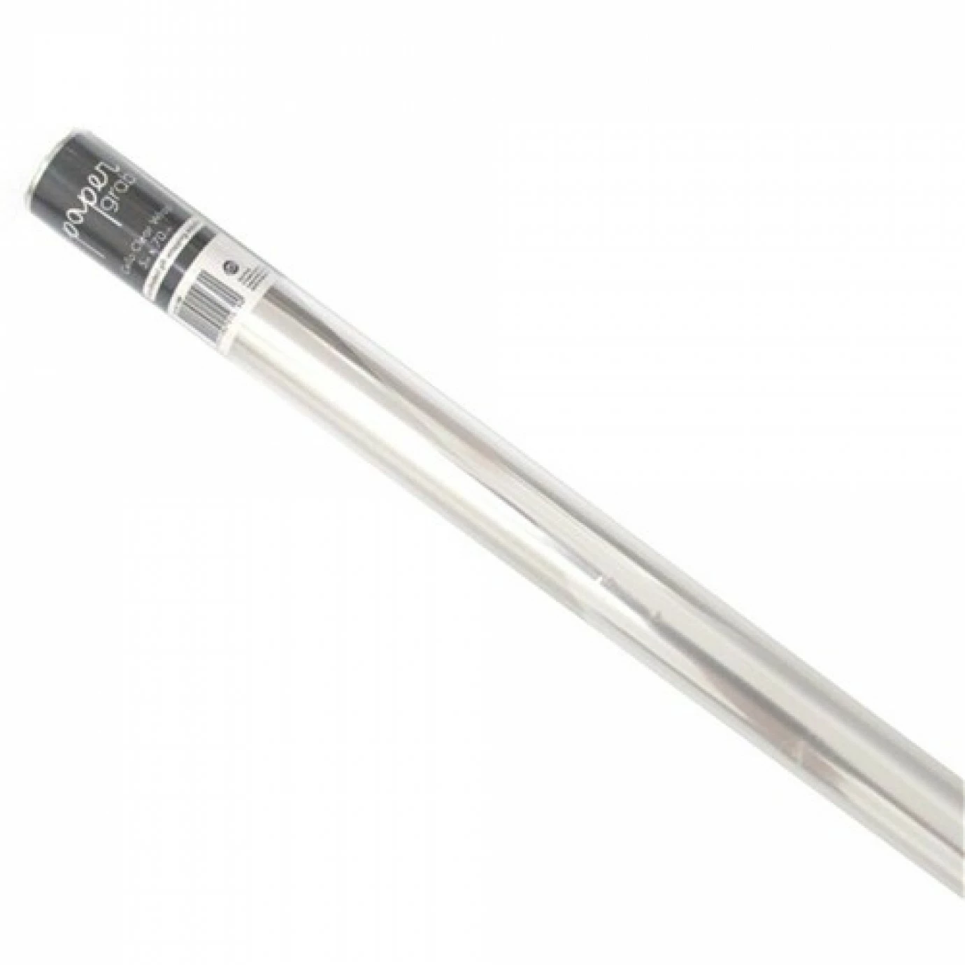 Wrapping cellophane roll with cardboard core. Measures 70 cm wide and 5 metres long. Available in clear only.