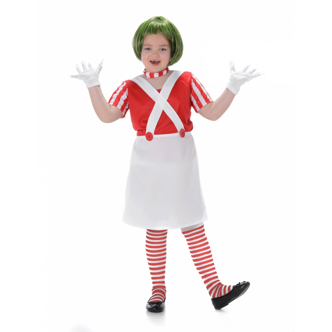 Costume includes dress, t shirt, collar, socks, gloves and wig.