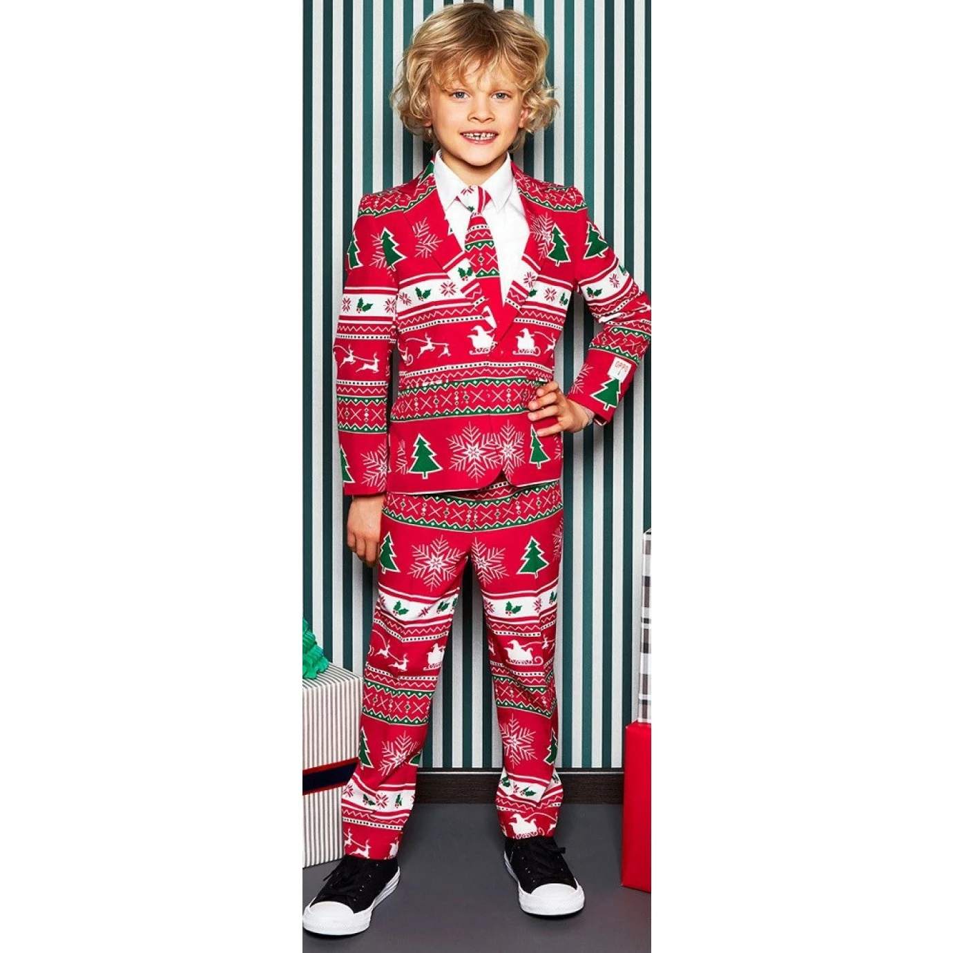 Suit includes jacket, trousers and neck tie made from 100% polyester material.
