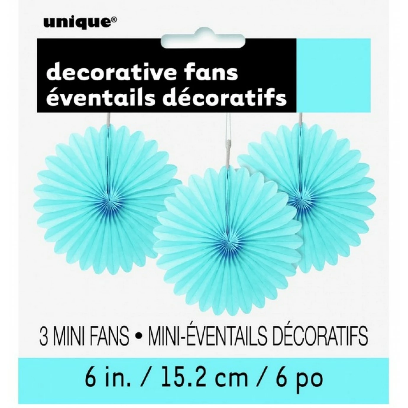 Pack contains three miniature hanging fan decorations made from tissue paper. Easy to assemble and hang, these fans are a great decorating solution.