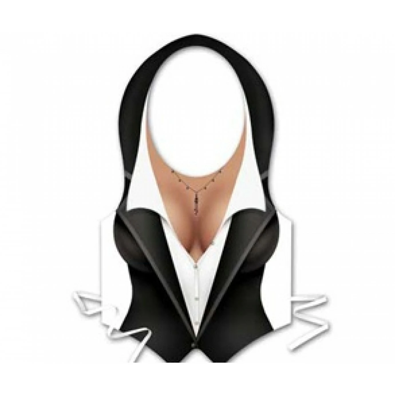 Make an impression with this cloth vest designed to look like a female version of a tuxedo.
