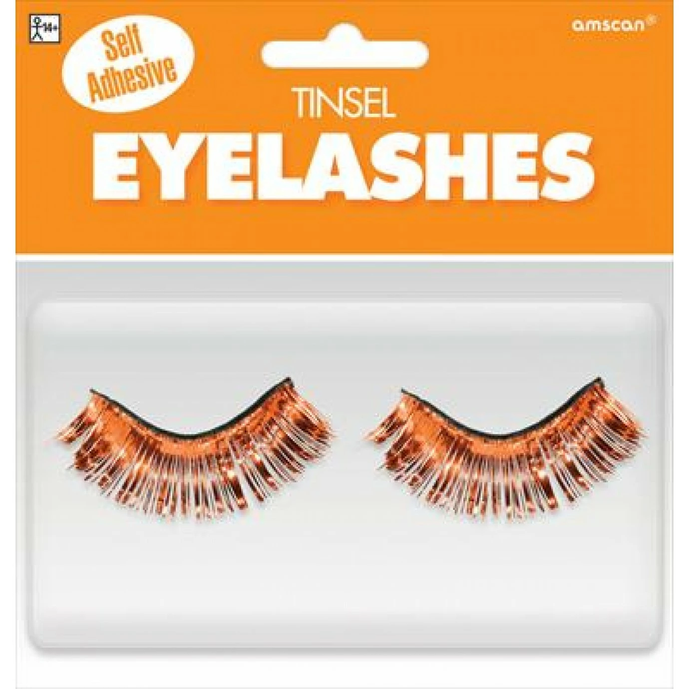 Pack contains two self adhesive tinsel false eyelashes. One size fits most adults. Easy to apply and remove. Available in the following colours: green, orange, yellow, purple, silver, blue, red, pink and multicolour.