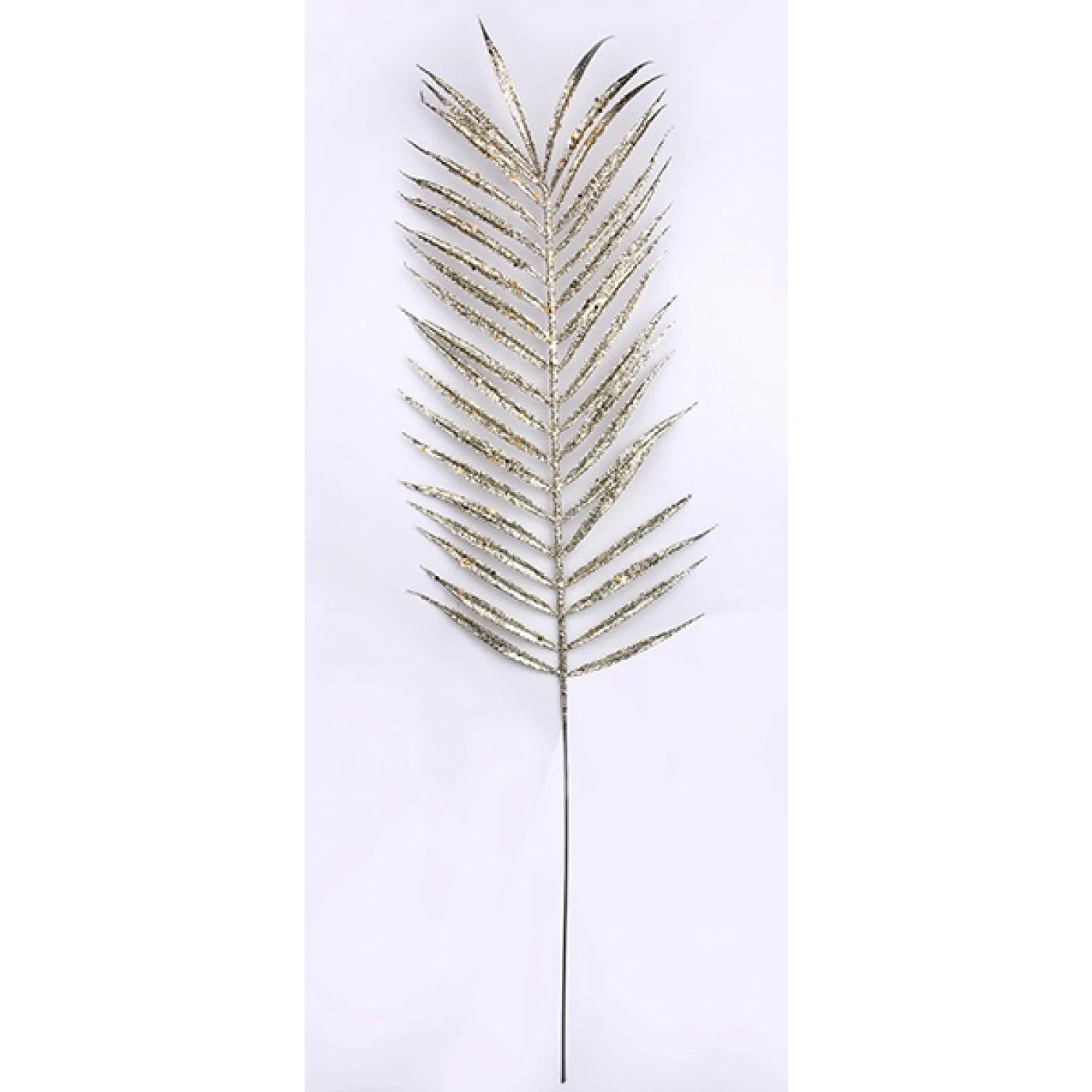 Decorative feather is made with a wire core and attached plastic parts with glitter finish. Measures approximately 48 cm long.