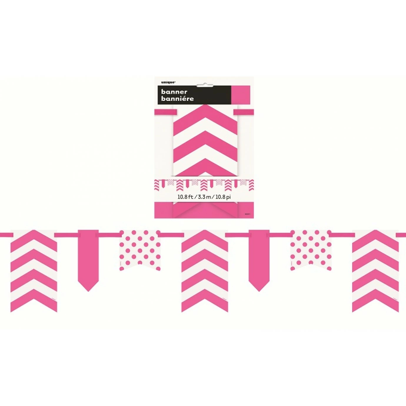 Flag Bunting – Dots & Chevrons, Hot Pink