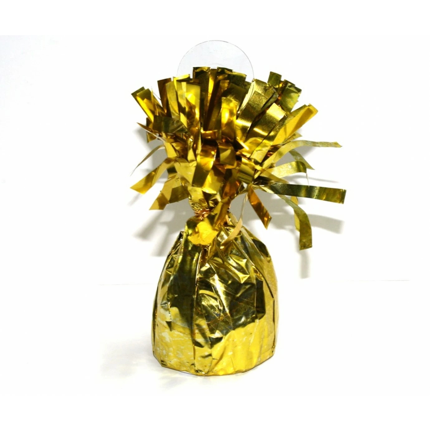 This balloon weight is covered in a special foil and has a fringed top. Tie your balloons to the tab supplied. This balloon weight will hold down approximately 10 x 11″ (30 cm) helium inflated balloons. Make your own balloon bouquets at home! This style of balloon weight is also available in a variety of other colours.