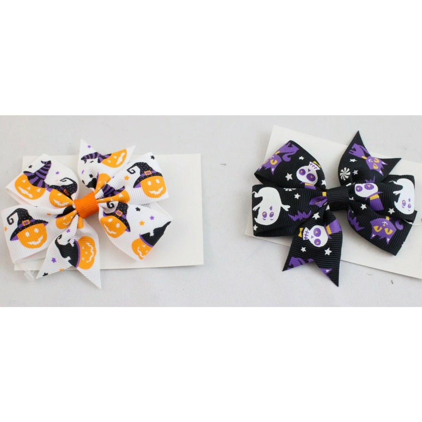 Set includes two clip-on hair bows, made from polyester with a Halloween themed design.