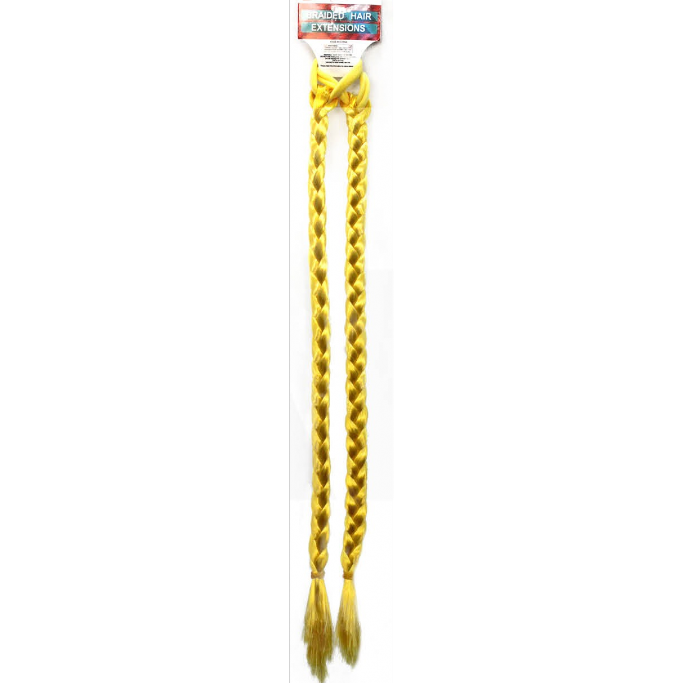 This hair extension features two separate braids made from synthetic hair with an elastic on the end of each for you to easier attach to your own hair.