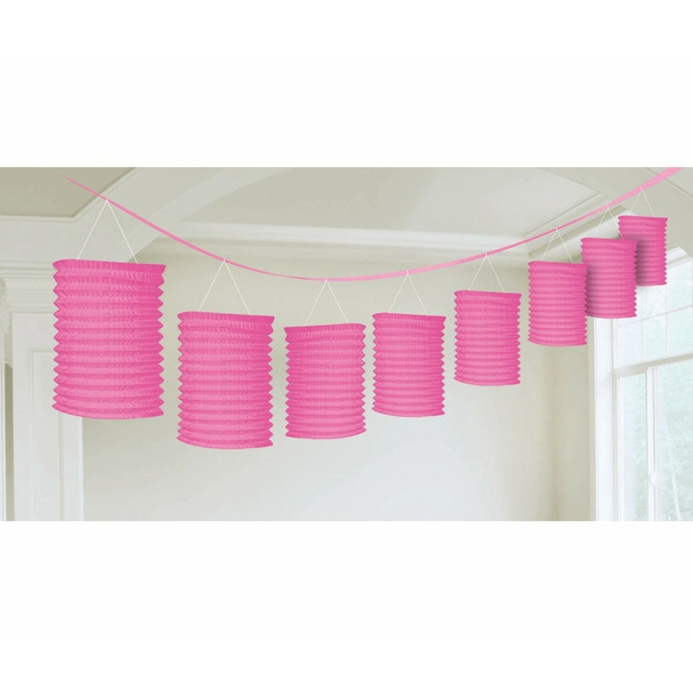 The garland is approximately 3.65 m long and comes with eight lanterns. The lanterns themselves measure 10 cm in diameter and 16 cm high when pulled out. The lanterns also feature cardboard base and top to help keep shape and to hold your LEDs!