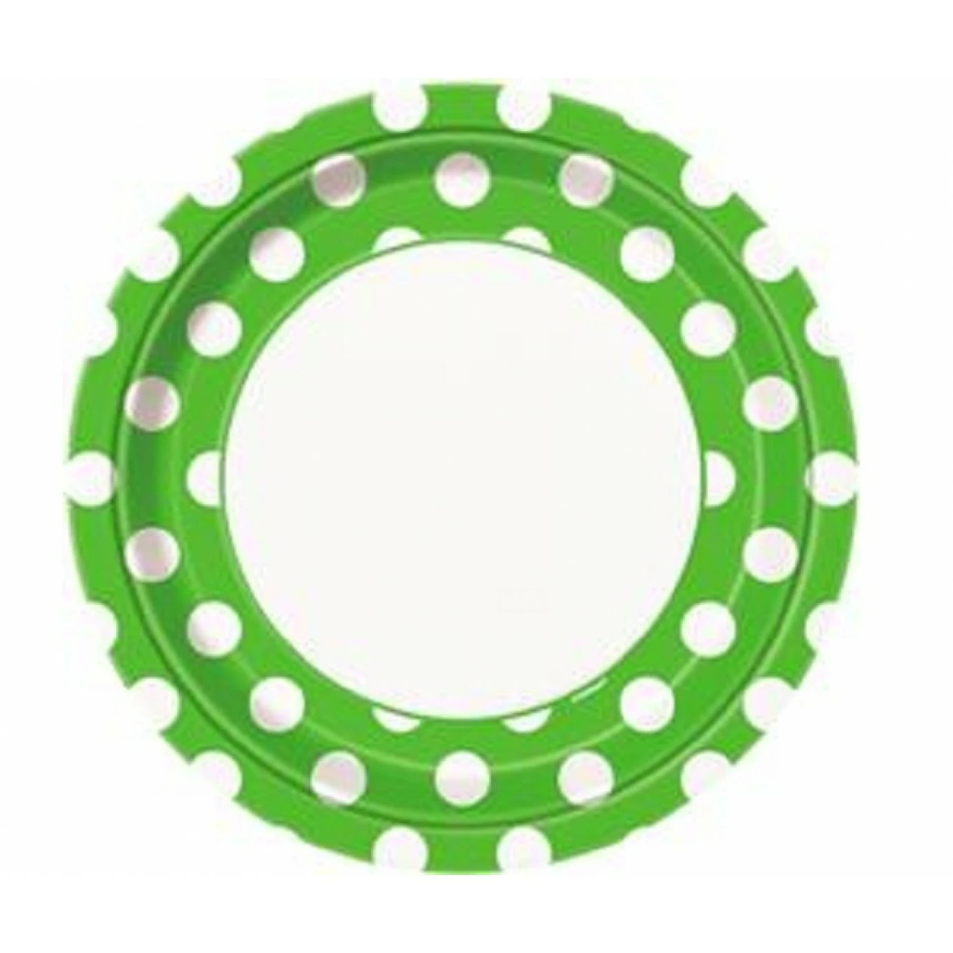 Pack contains eight disposable paper plates measuring approximately 22 cm in diameter.
