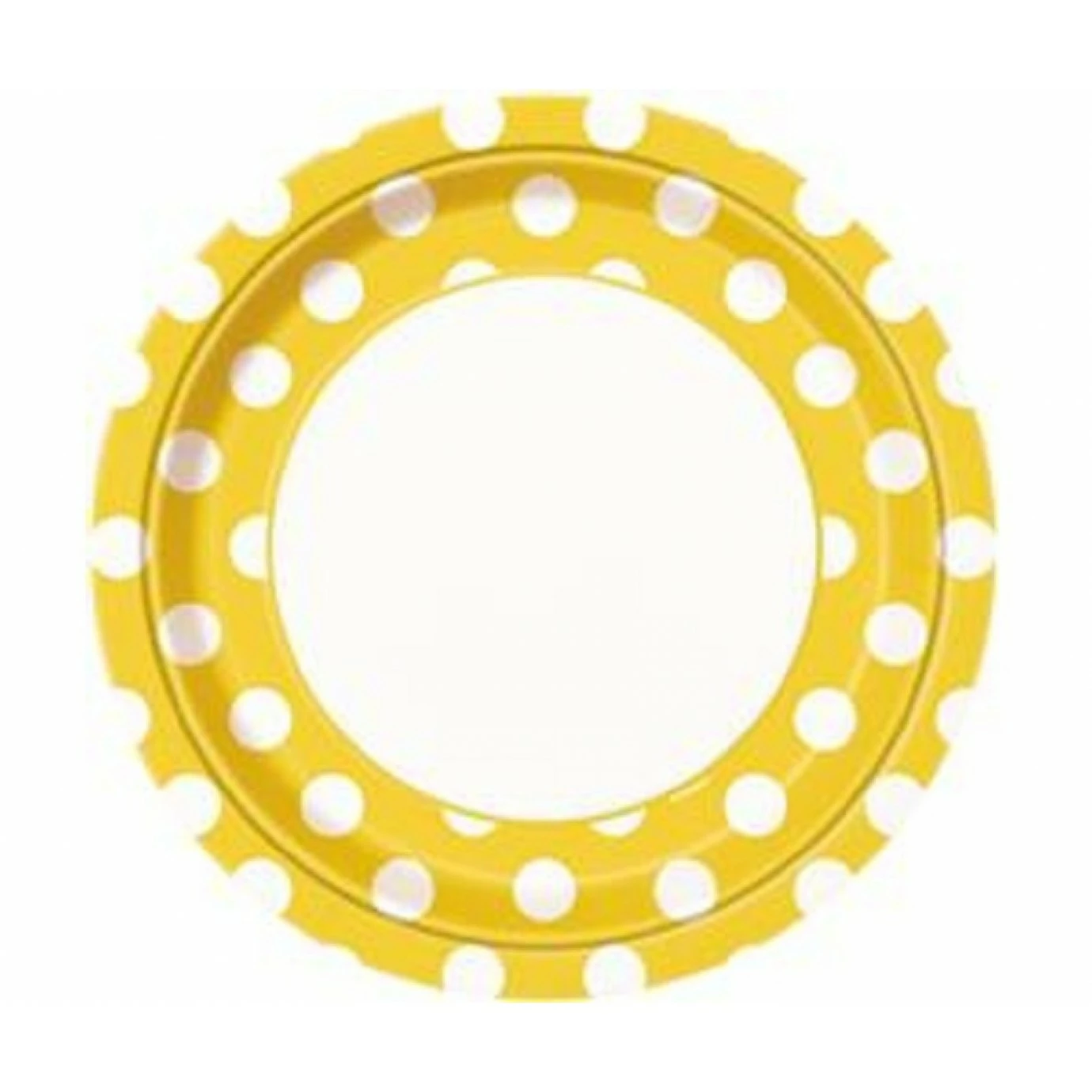 Pack contains eight disposable paper plates measuring approximately 22 cm in diameter.