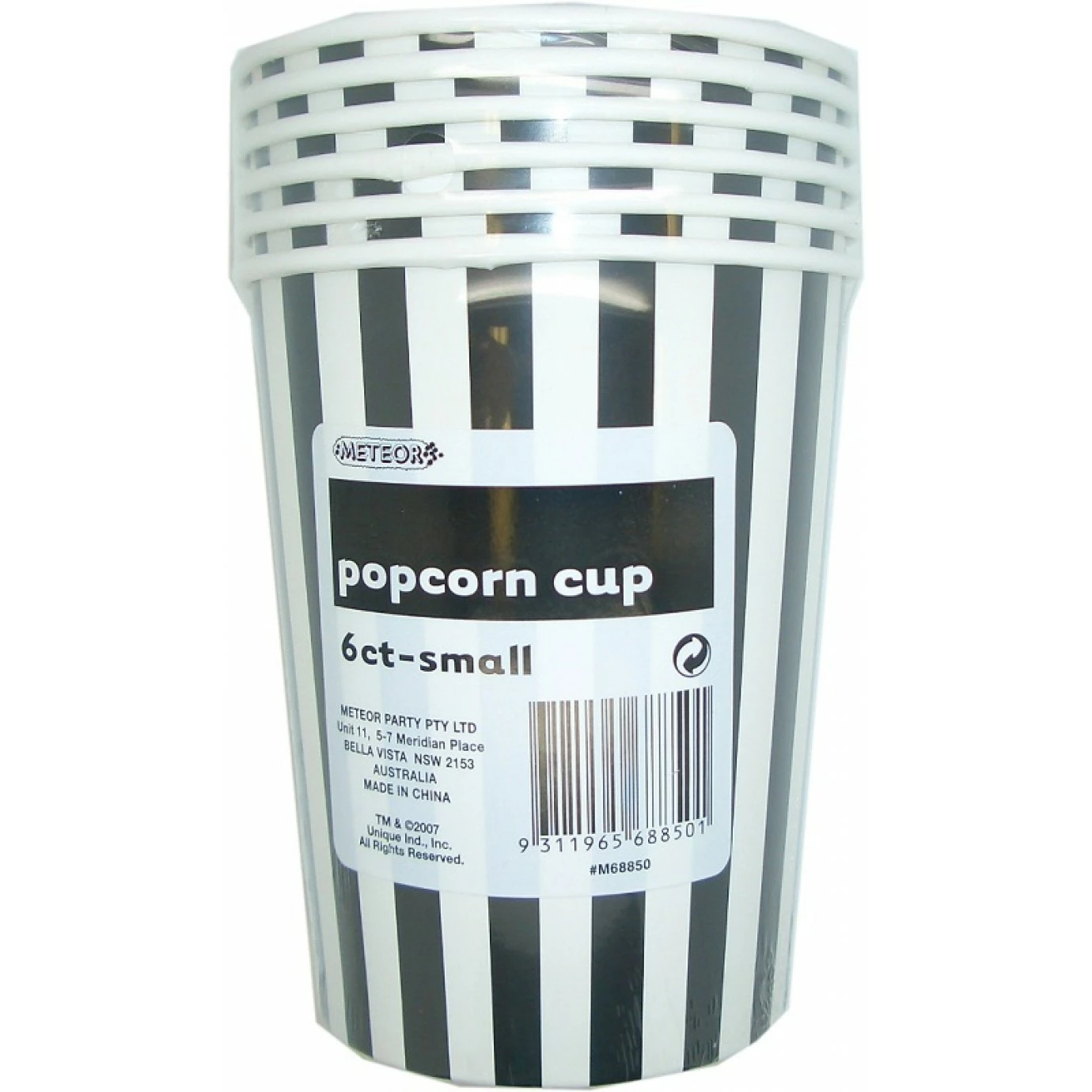 Popcorn Cups, Small – Stripes, Black 6 Pk