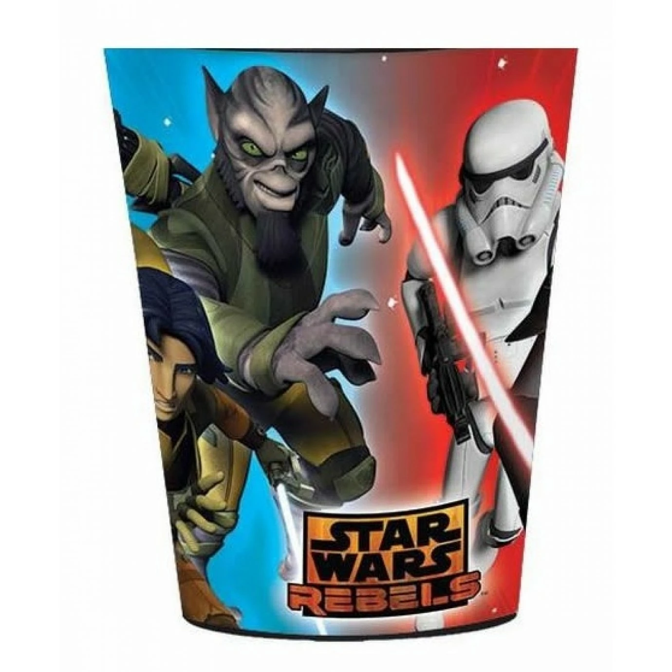 A plastic Star Wars Rebels themed souvenier cup for catering your next Star Wars party. Star Wars Rebels is an animated series set in the Star Wars universe, following the story of a small band of rebels as they struggle against the Empire.