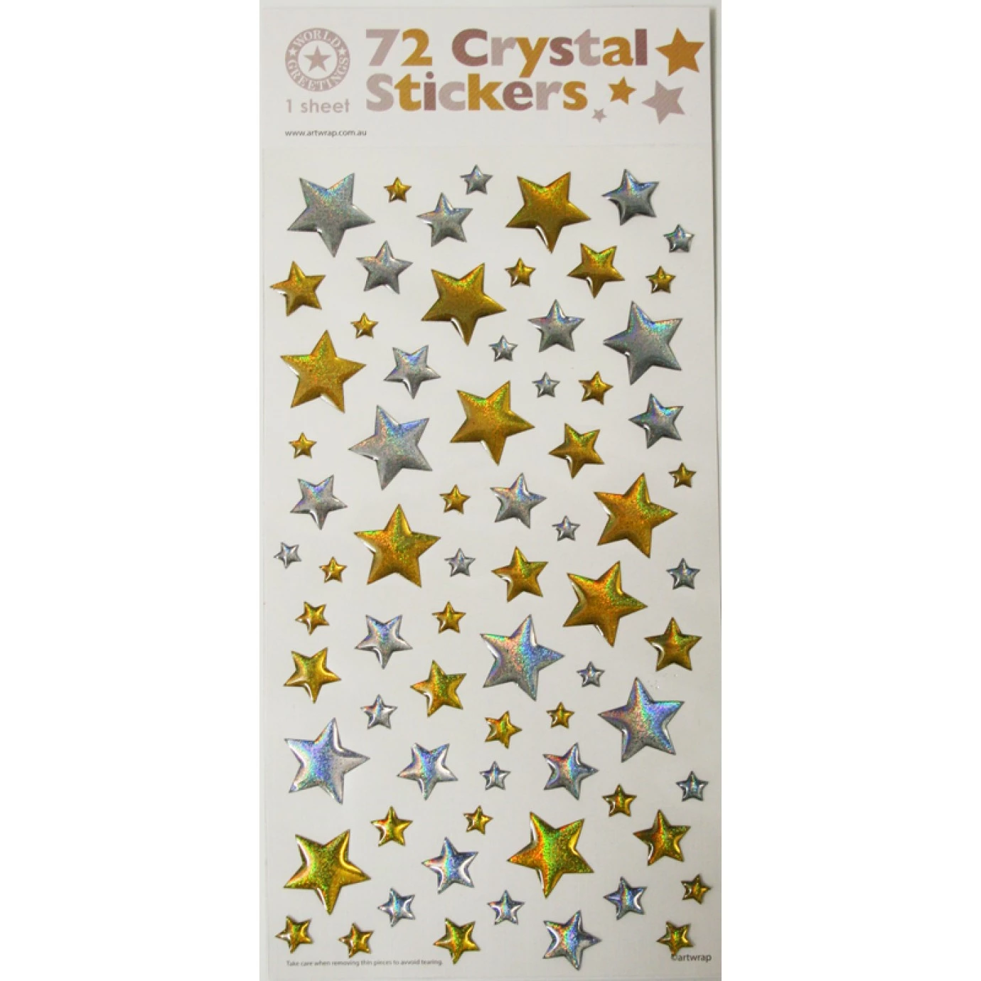 One sheet of 72 stickers ranging in size from 0.5 cm to 2 cm approximately in a mix of gold and silver.