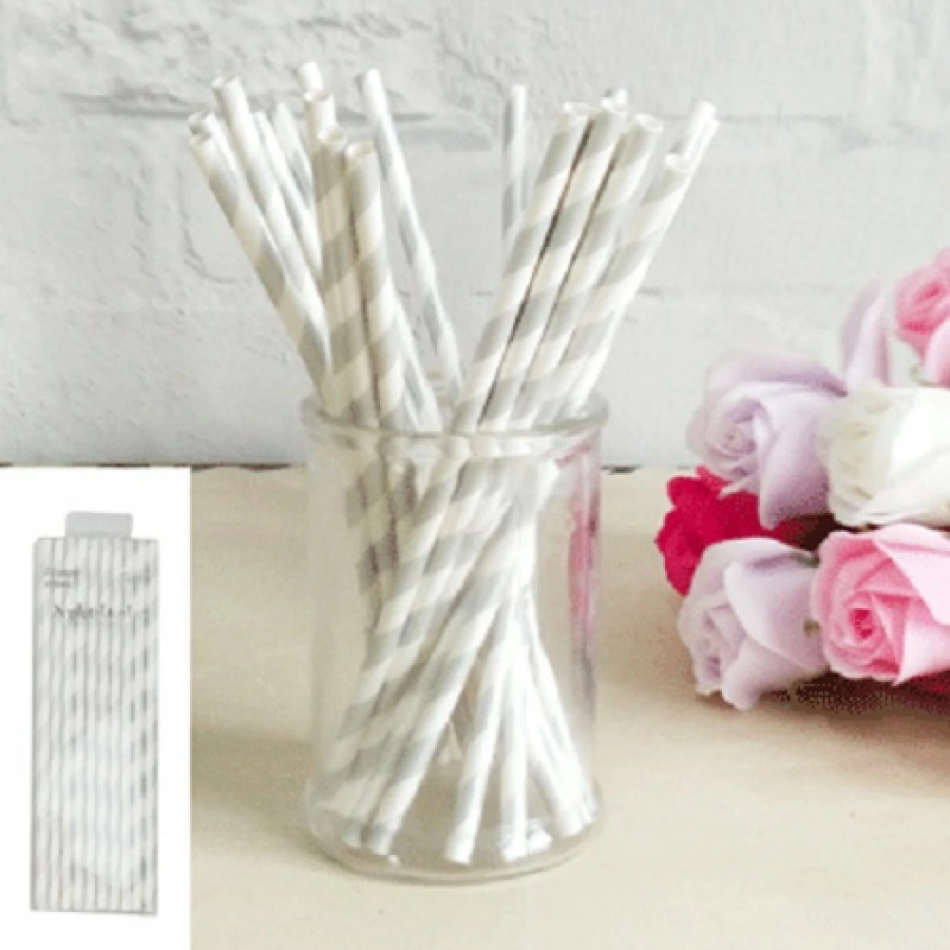 Pack contains 20 paper straws, each measuring approximately 19.5 cm long.
