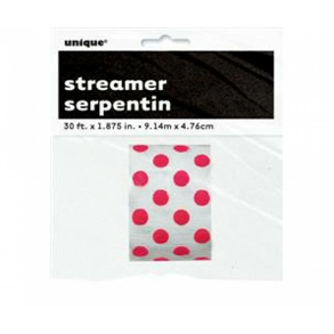 Decorate your party space with these red polka dot streamers.