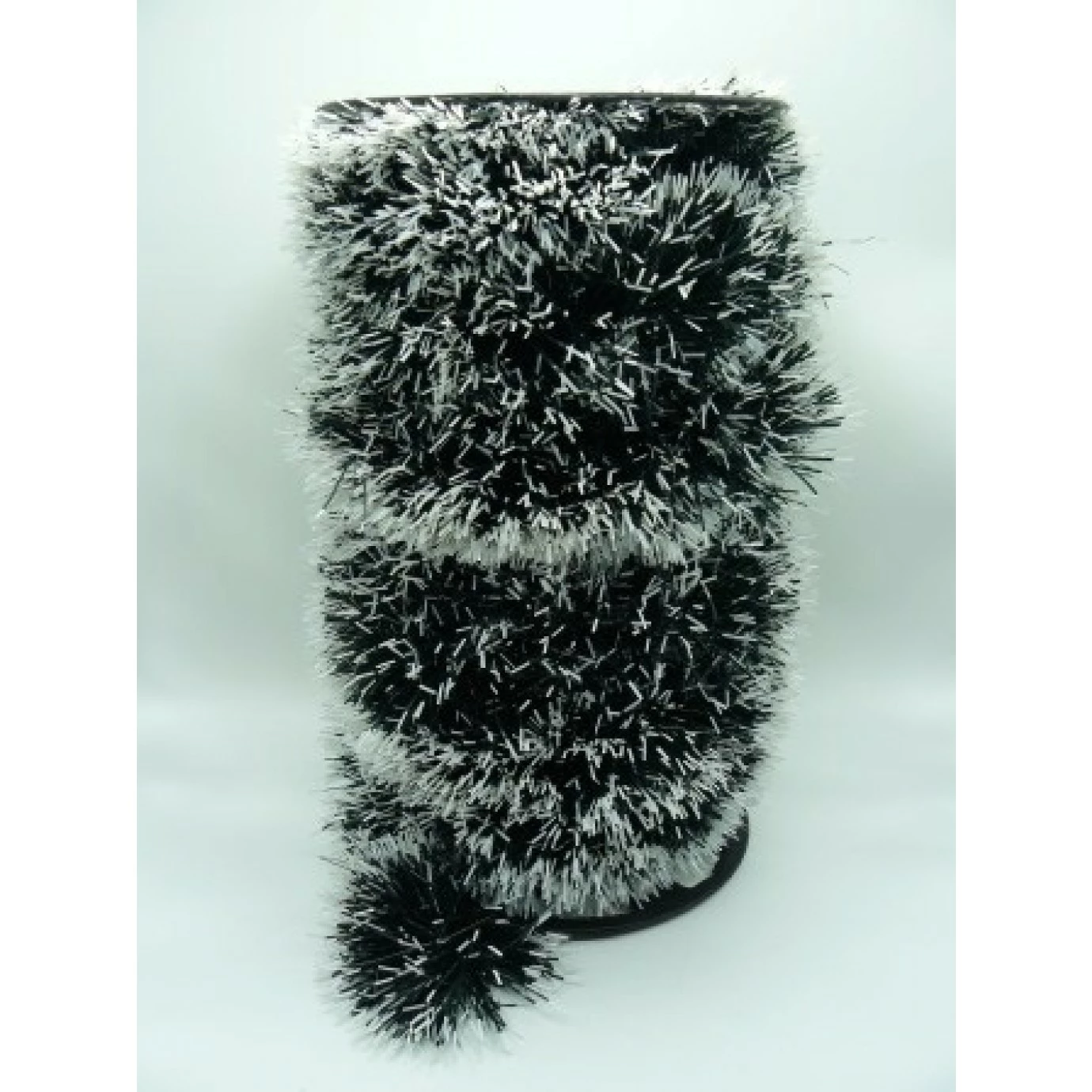 Tinsel is made from mylar foil. Roll measures approximately 20 metres long. This tinsel is dark green/black with white tips.