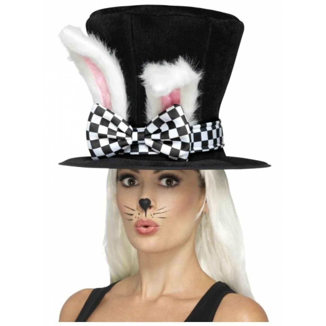 Be the Mad Hatter this Easter with this over size top hat featuring attached fluffy bunny ears!