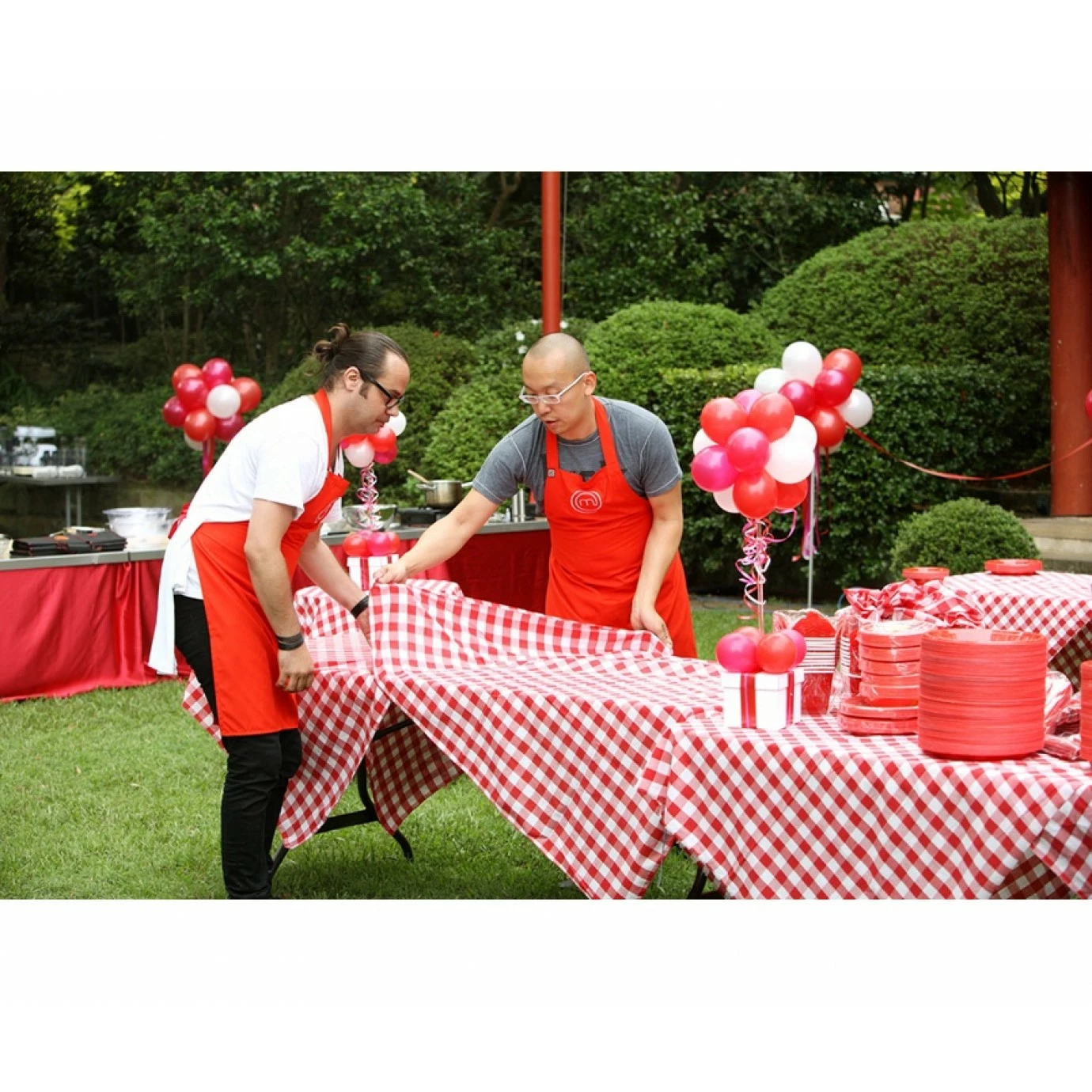 Topiaries can be created in endless colour combinations! The topiaries shown here were created for the Red Team on MasterChef. The Party People also supplied coloured tableware for this episode to co-ordinate with the red topiaries. Please call our store for pricing information. The price shown here is for a standard topiary tree.